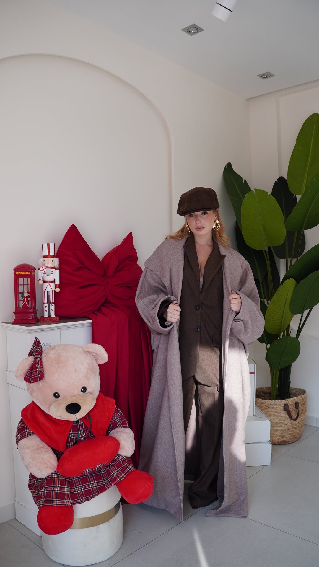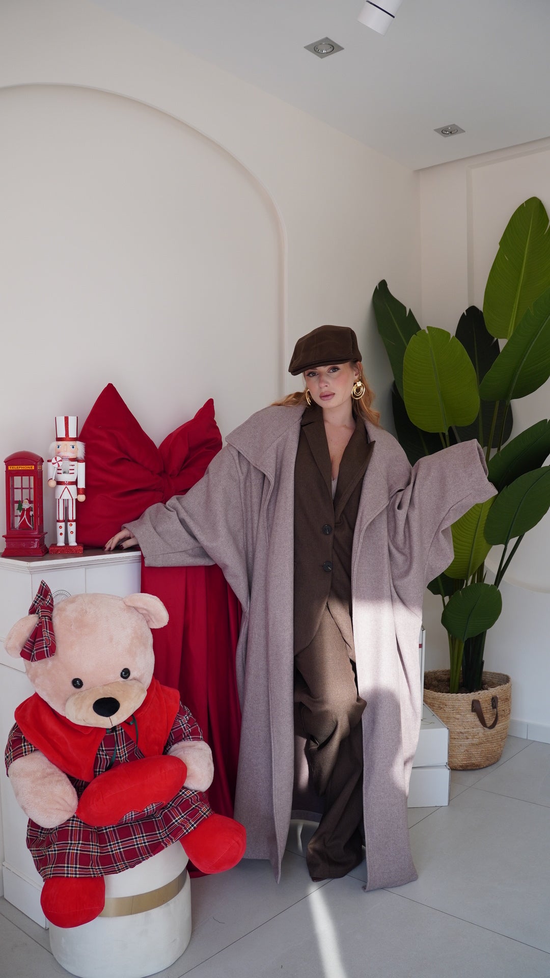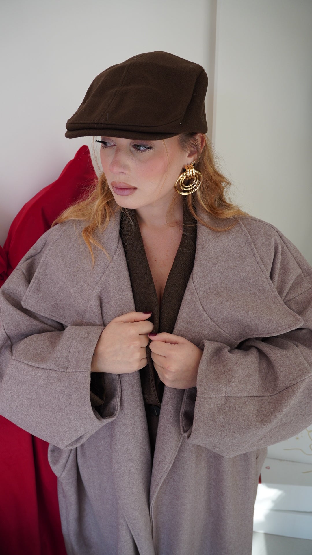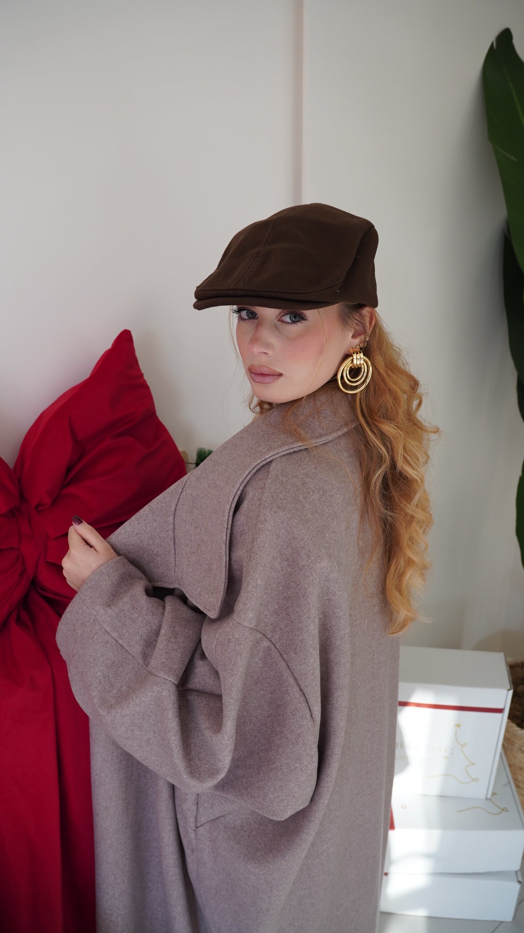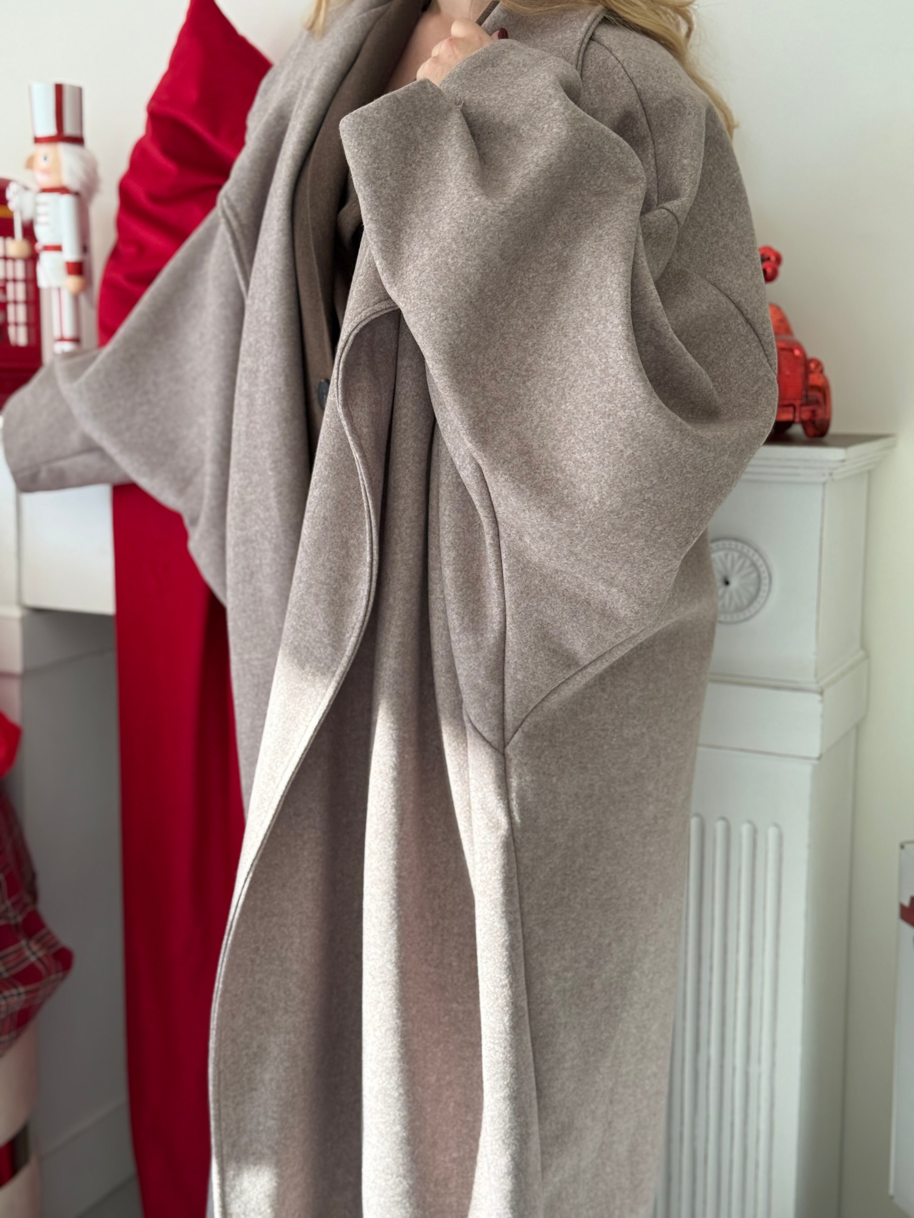 Cappotto lungo in panno taglia unica modello over size con maniche ampie senza chiusura la taglia unica può vestire dalla s alla XL