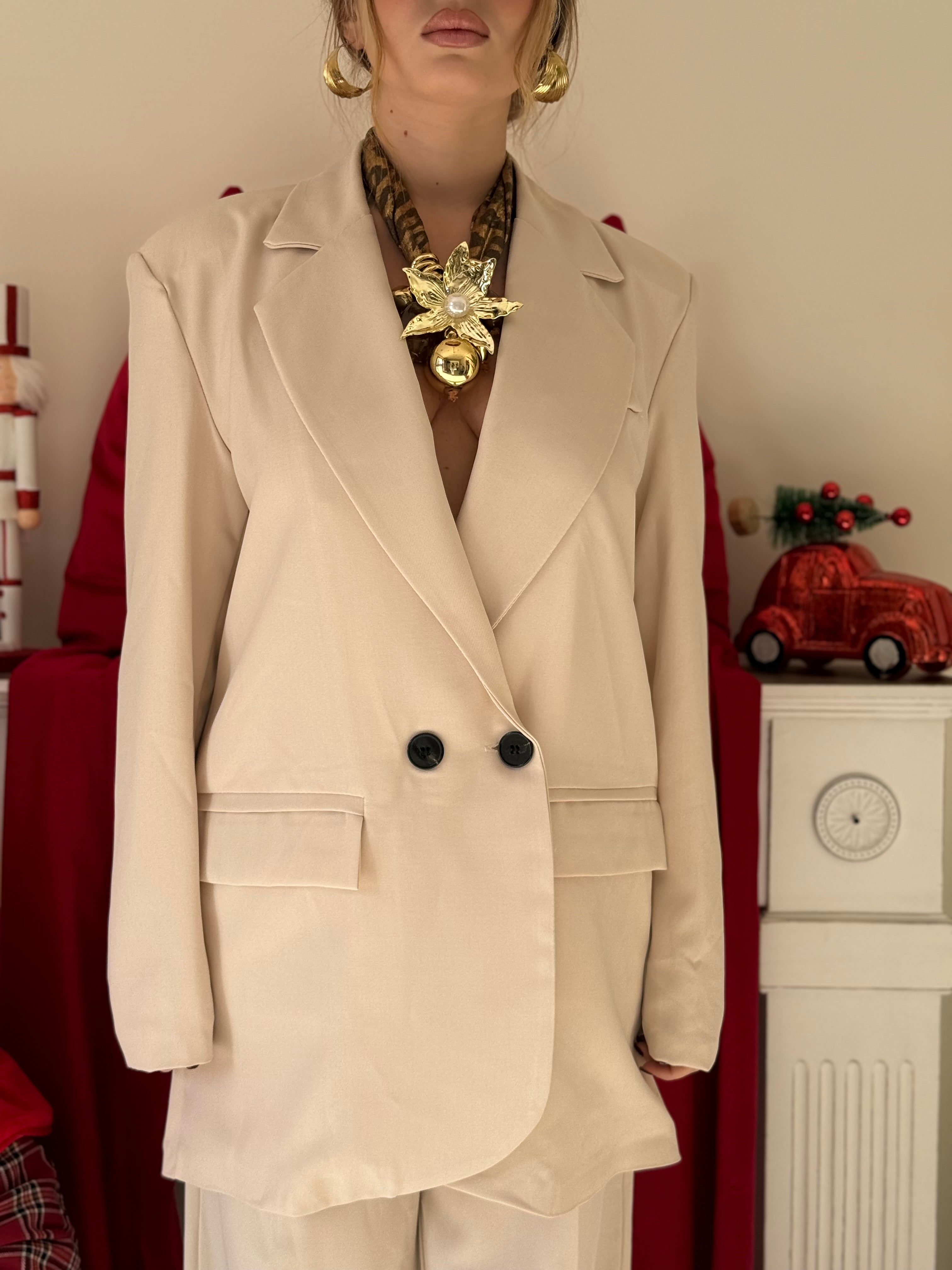 Giacca oversize con spalline imbottite colletto Rêver e chiusura due bottoni frontali doppio petto ,interno foderato