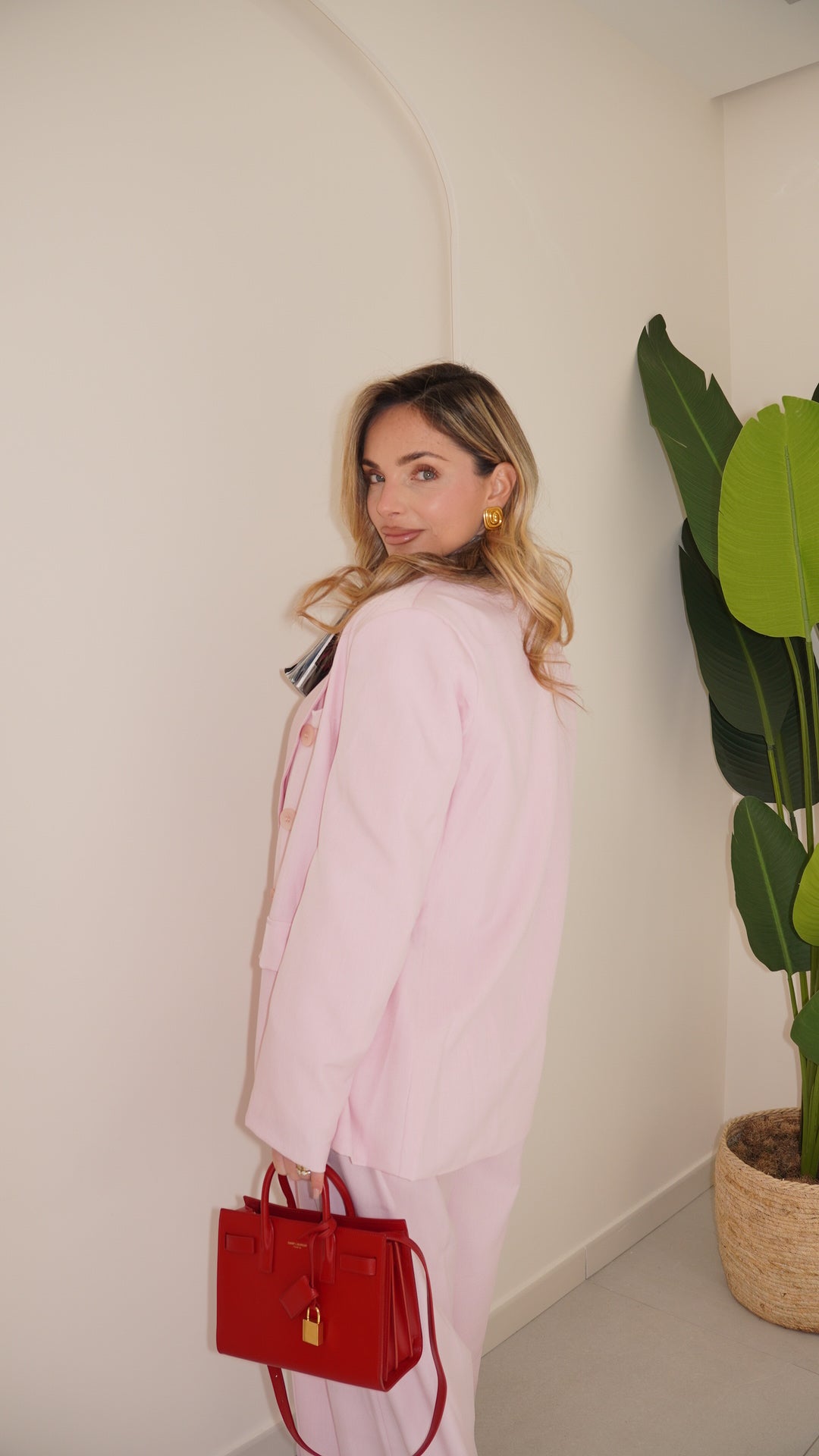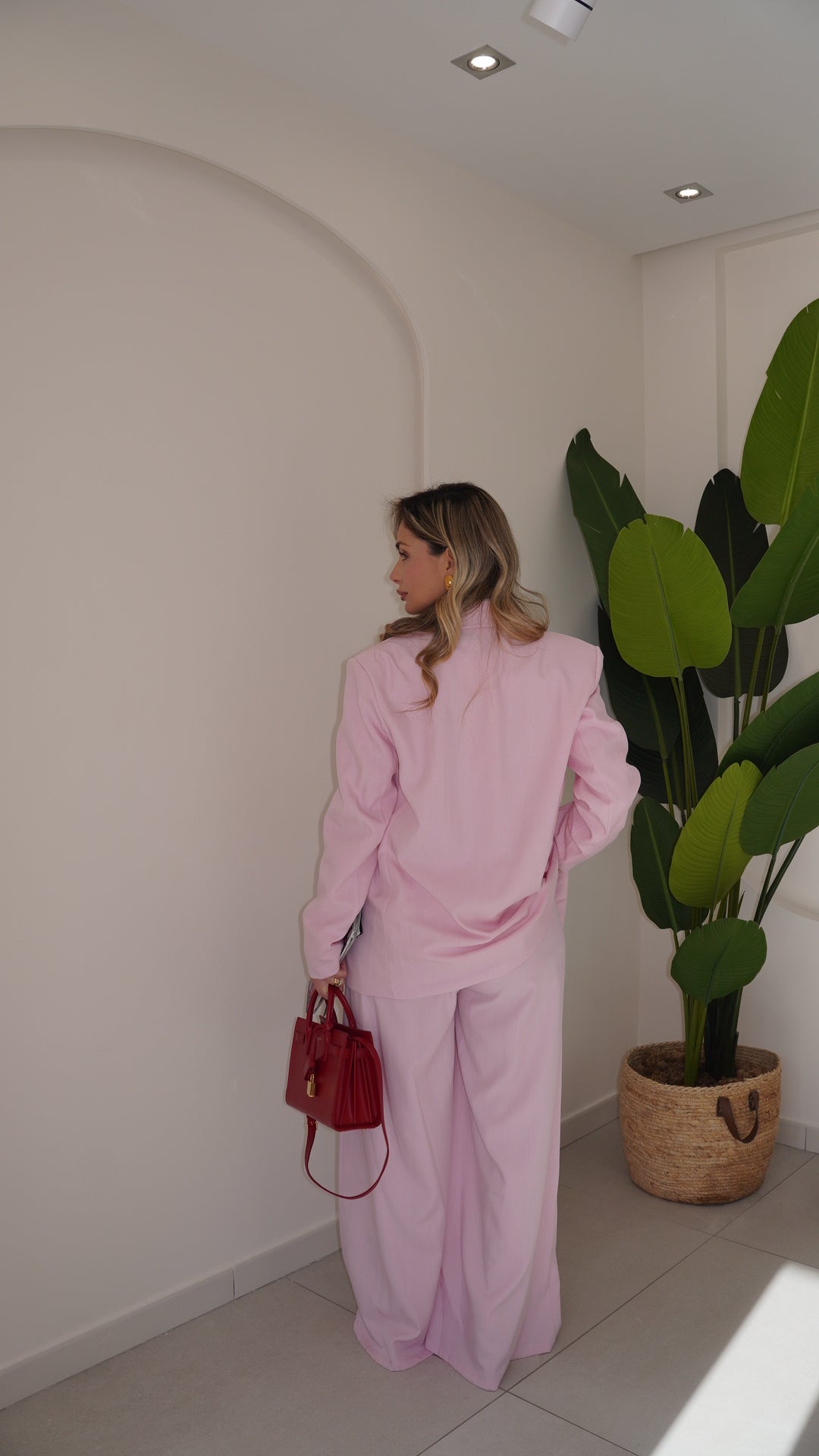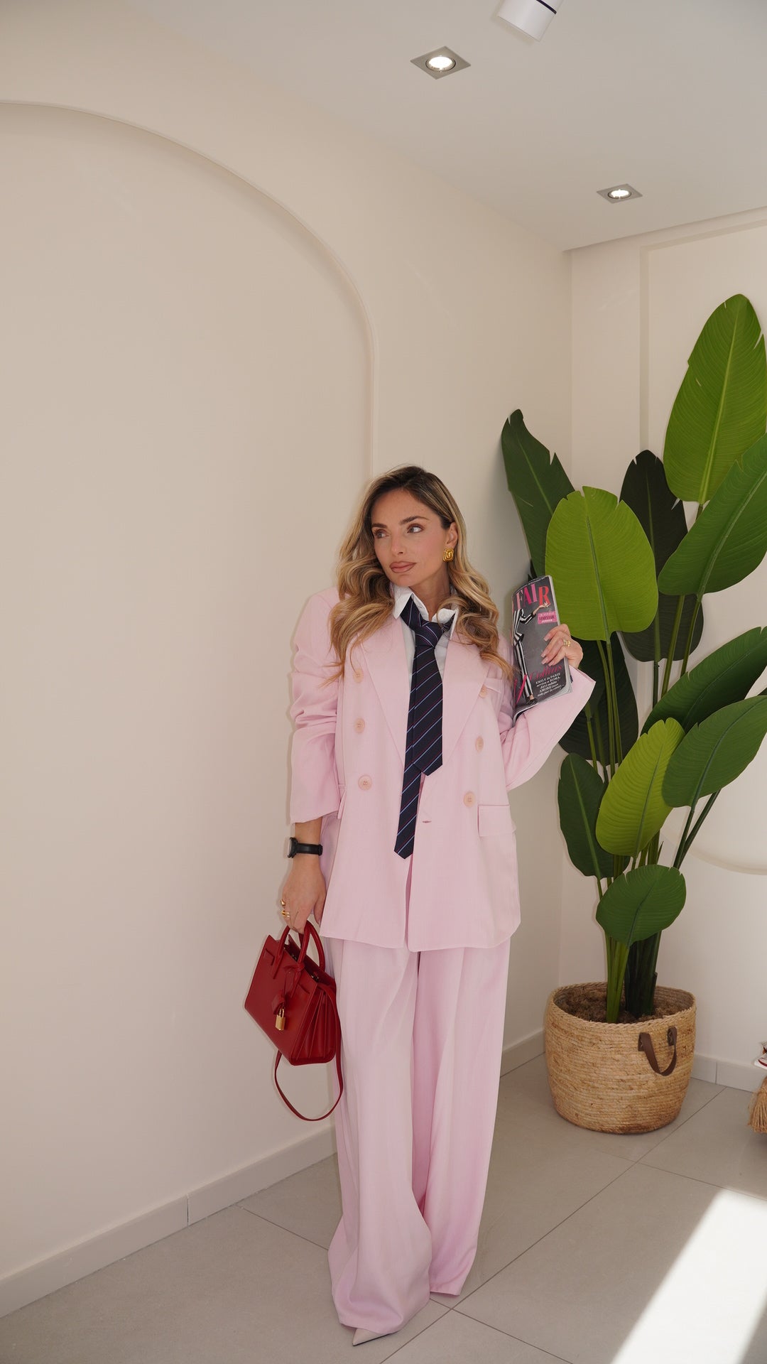 Tailleur Premium quality composto da giacca con colletto a reverse chiusura frontale doppio petto e spalline imbottite,pantalone vita alta con elastico sul retro e chiusura con zip e bottone tasche ambo laterali gamba ampia