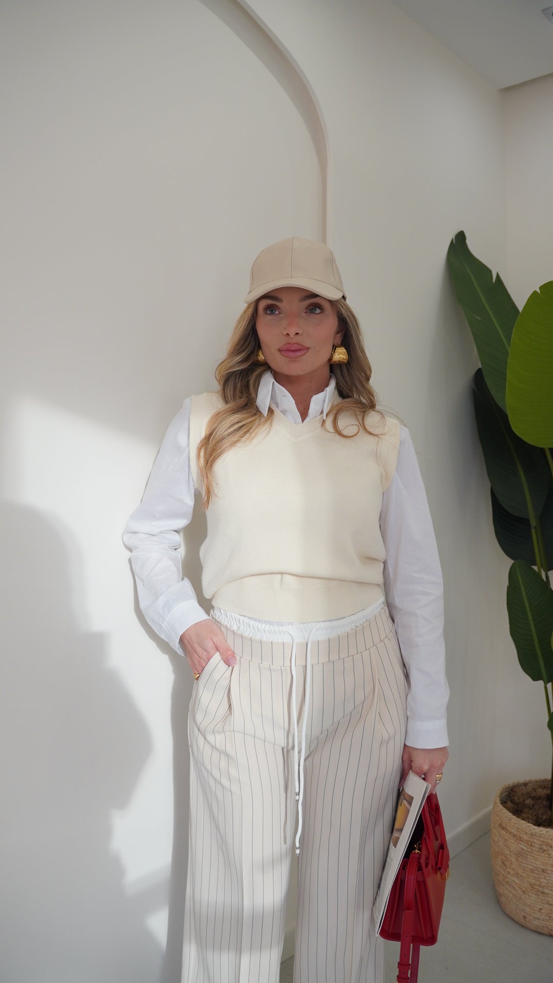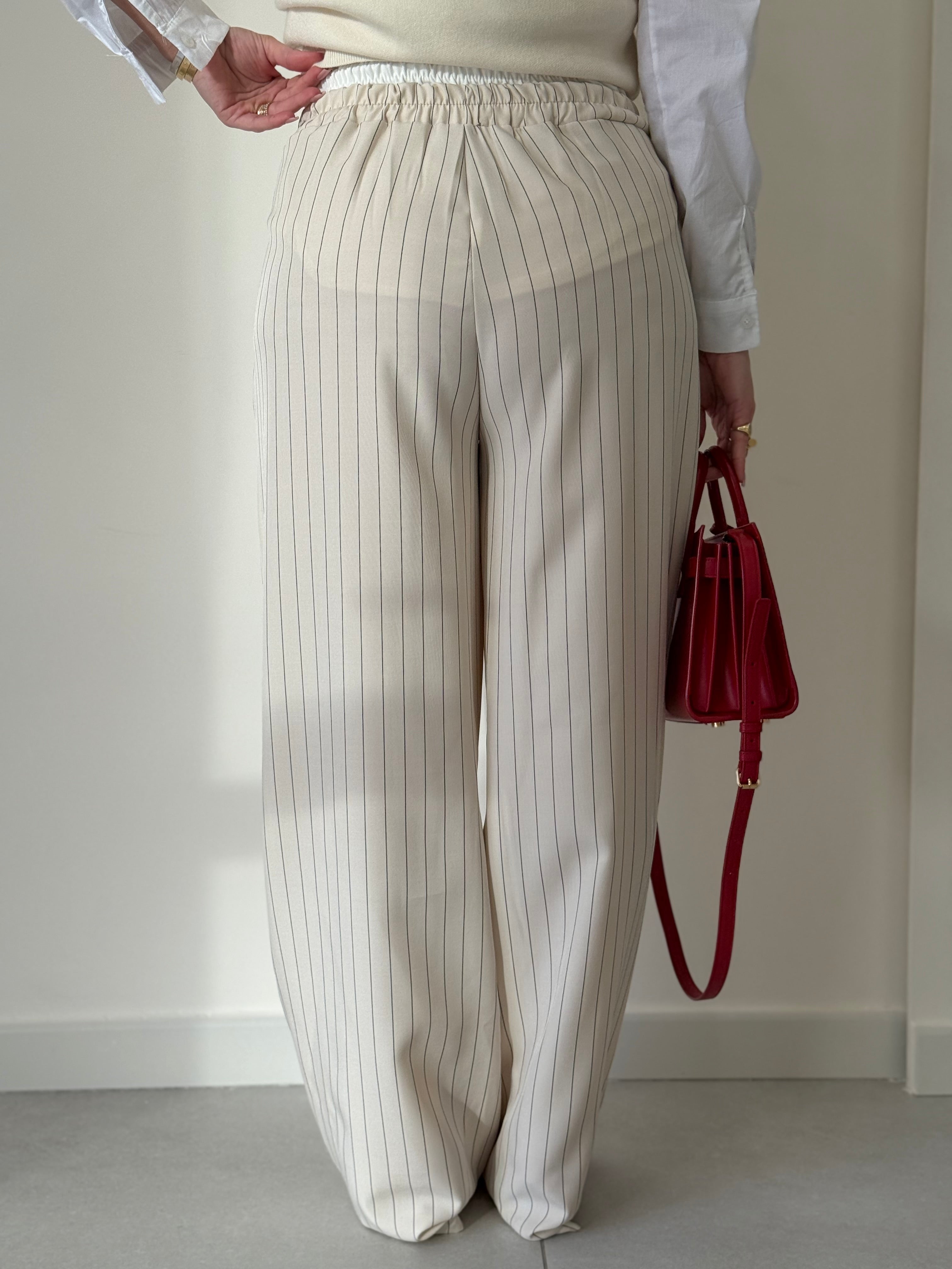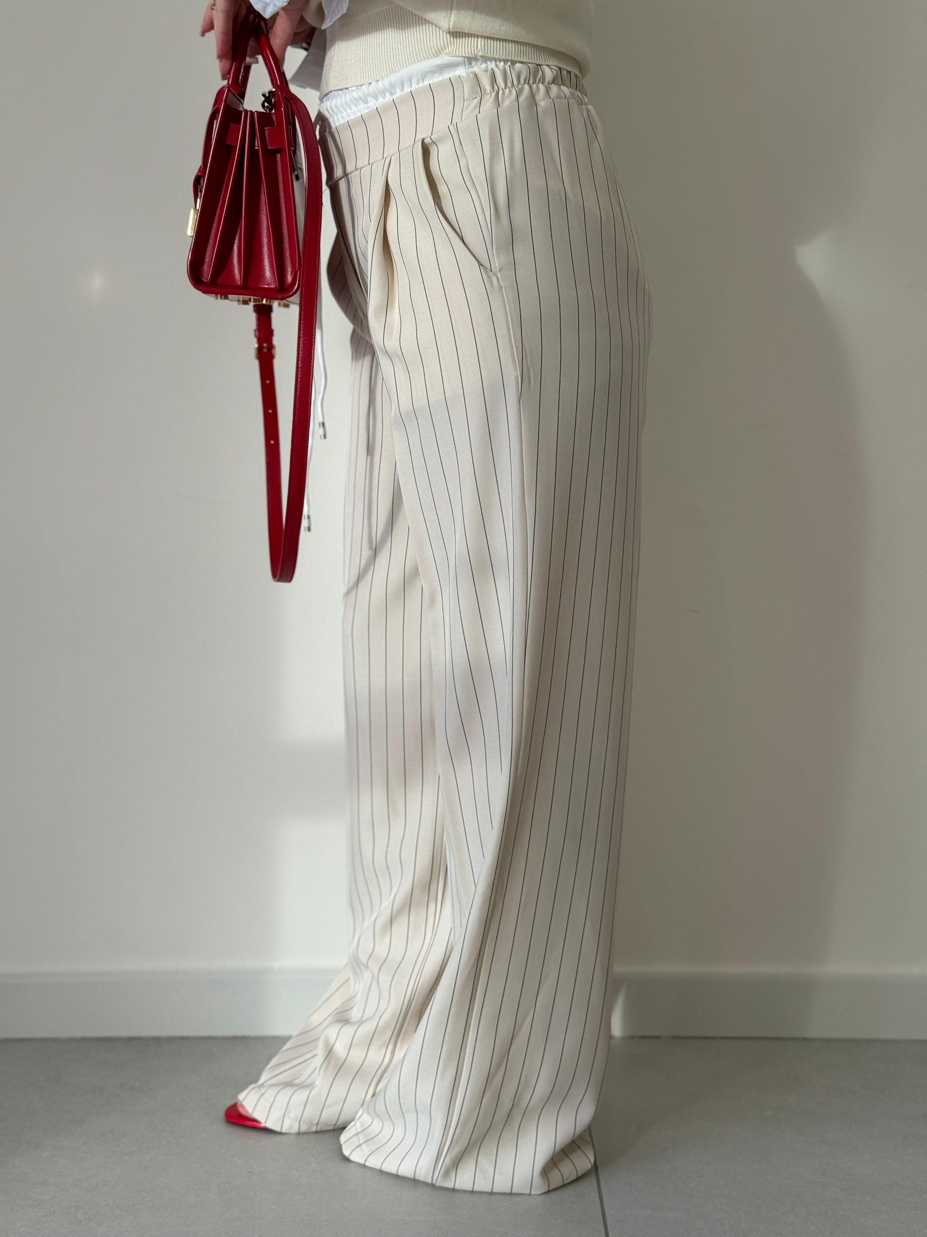 Pantalone in viscosa gessato taglia unica Vita alta con bustino elastico a contrasto di colore tasche Ambo laterali Gamba larga