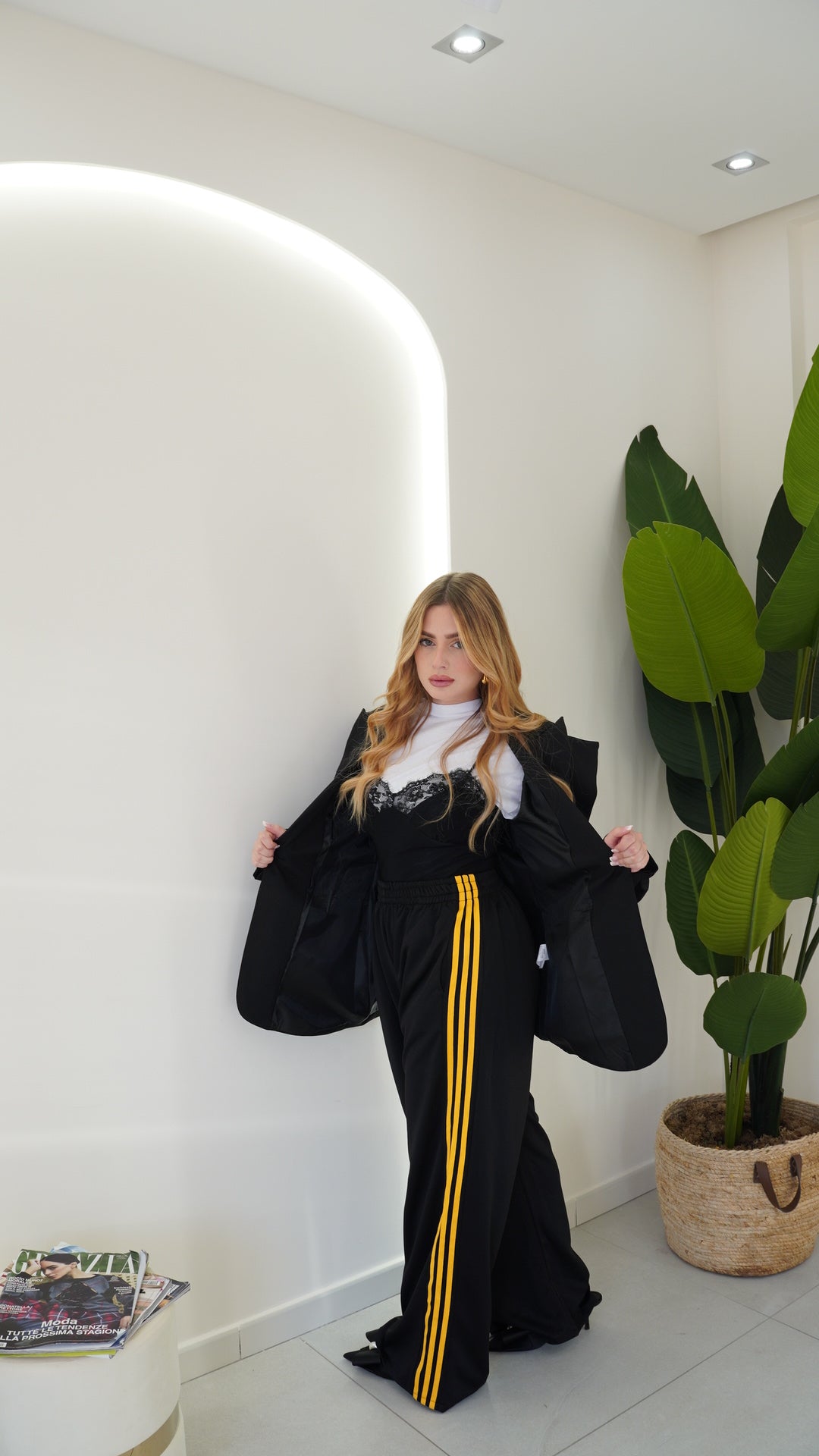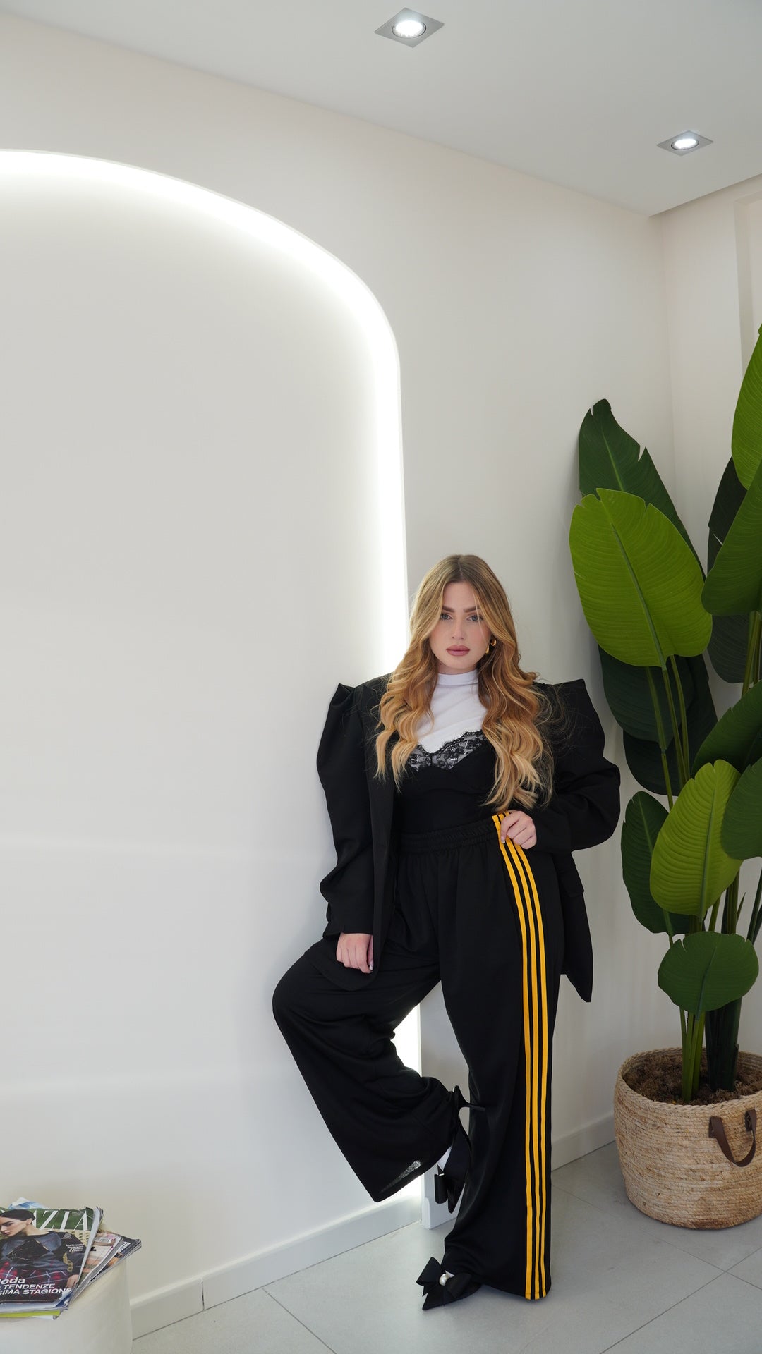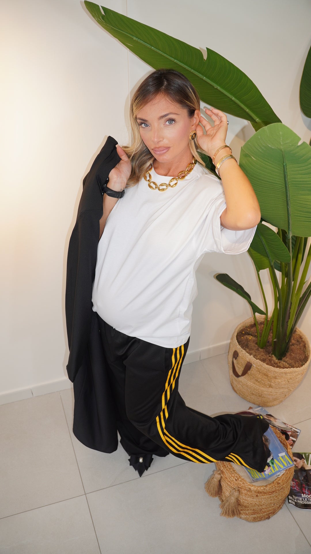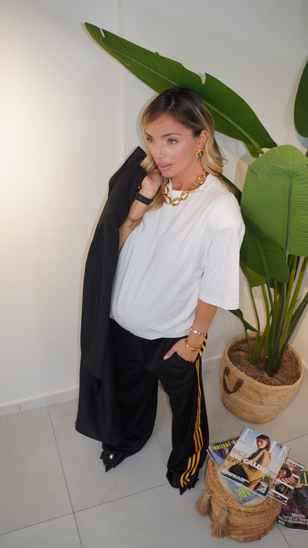 Con elastico in vita gamba dritta e fasce ambo I laterali
