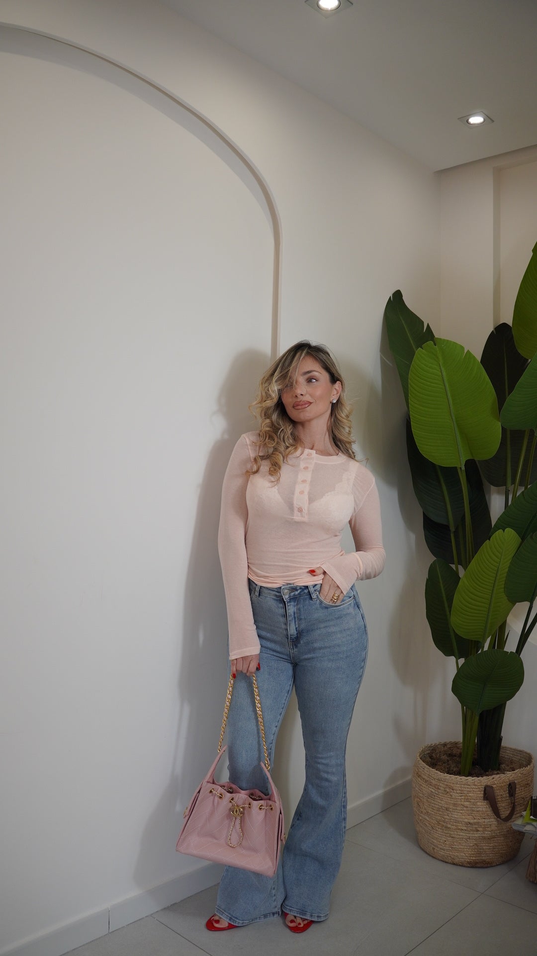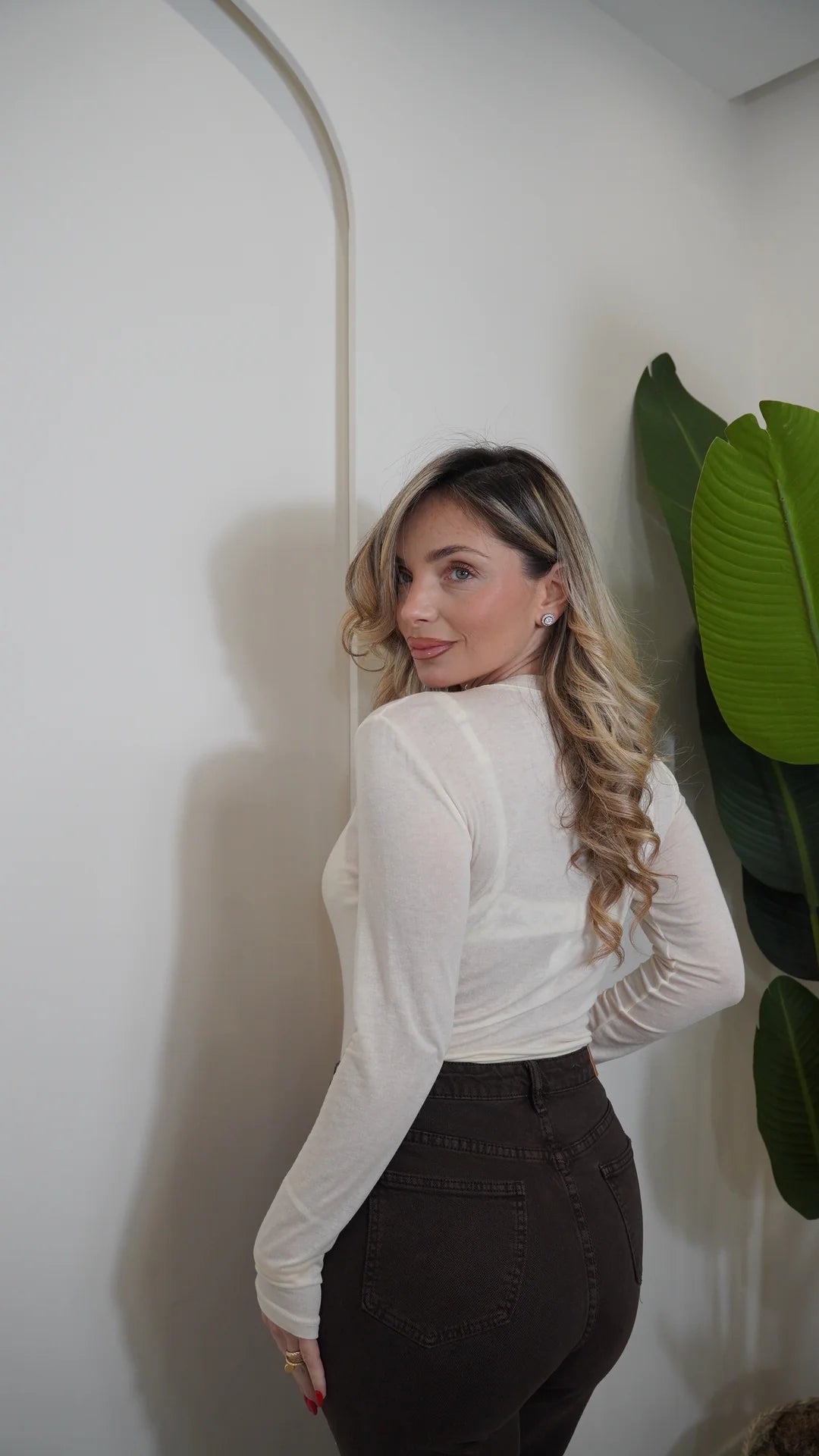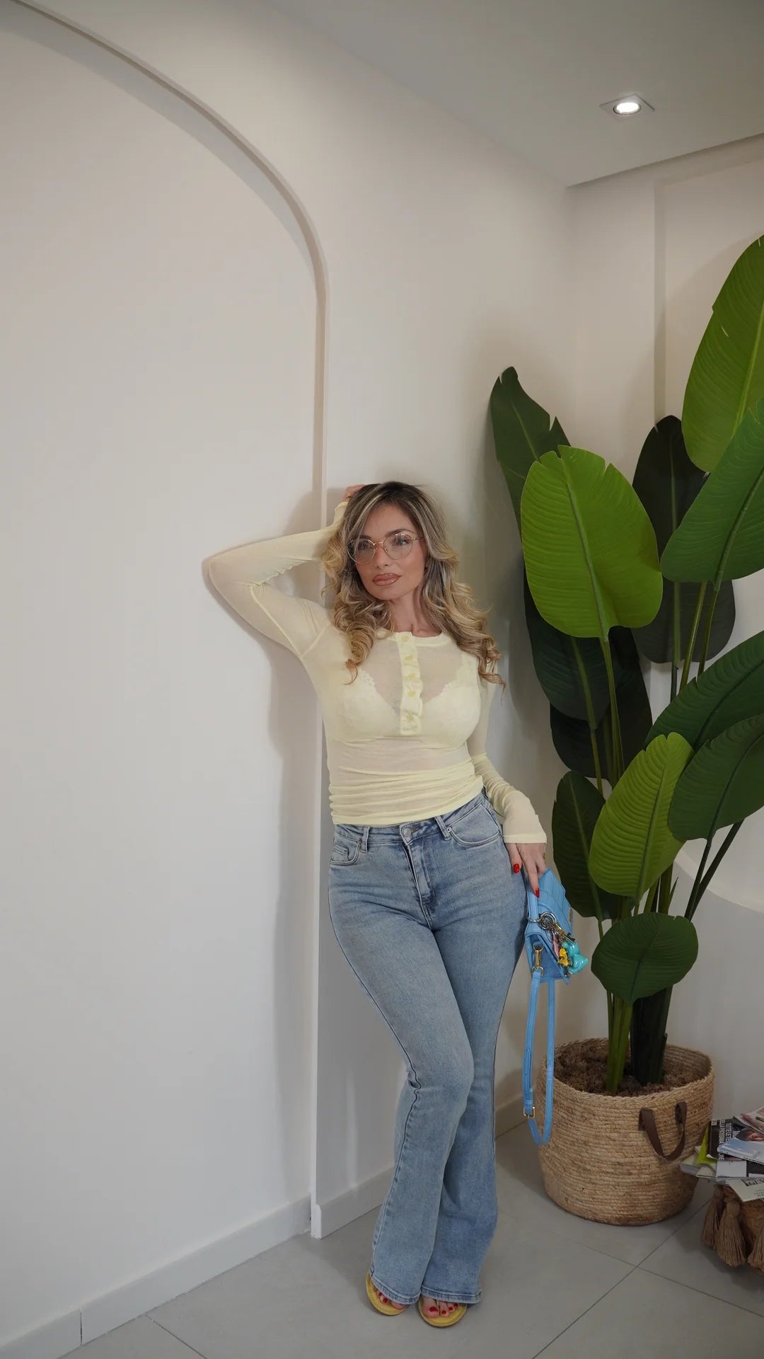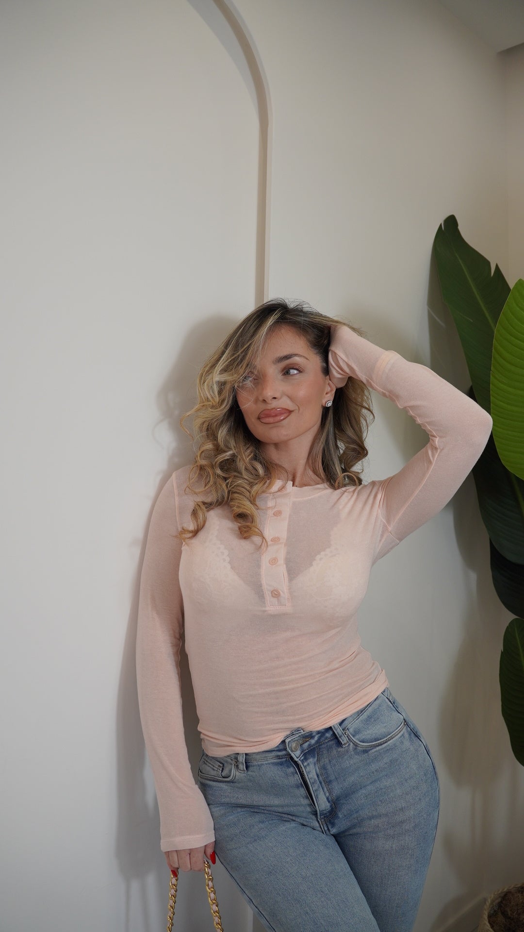 Maglia semivelata in cotone taglia unica aderente ed elastica con collo rotondo E bottoncini frontali apribili