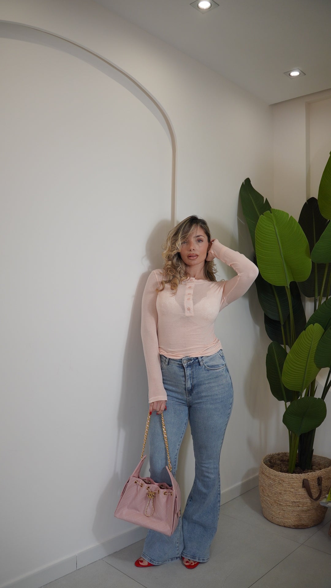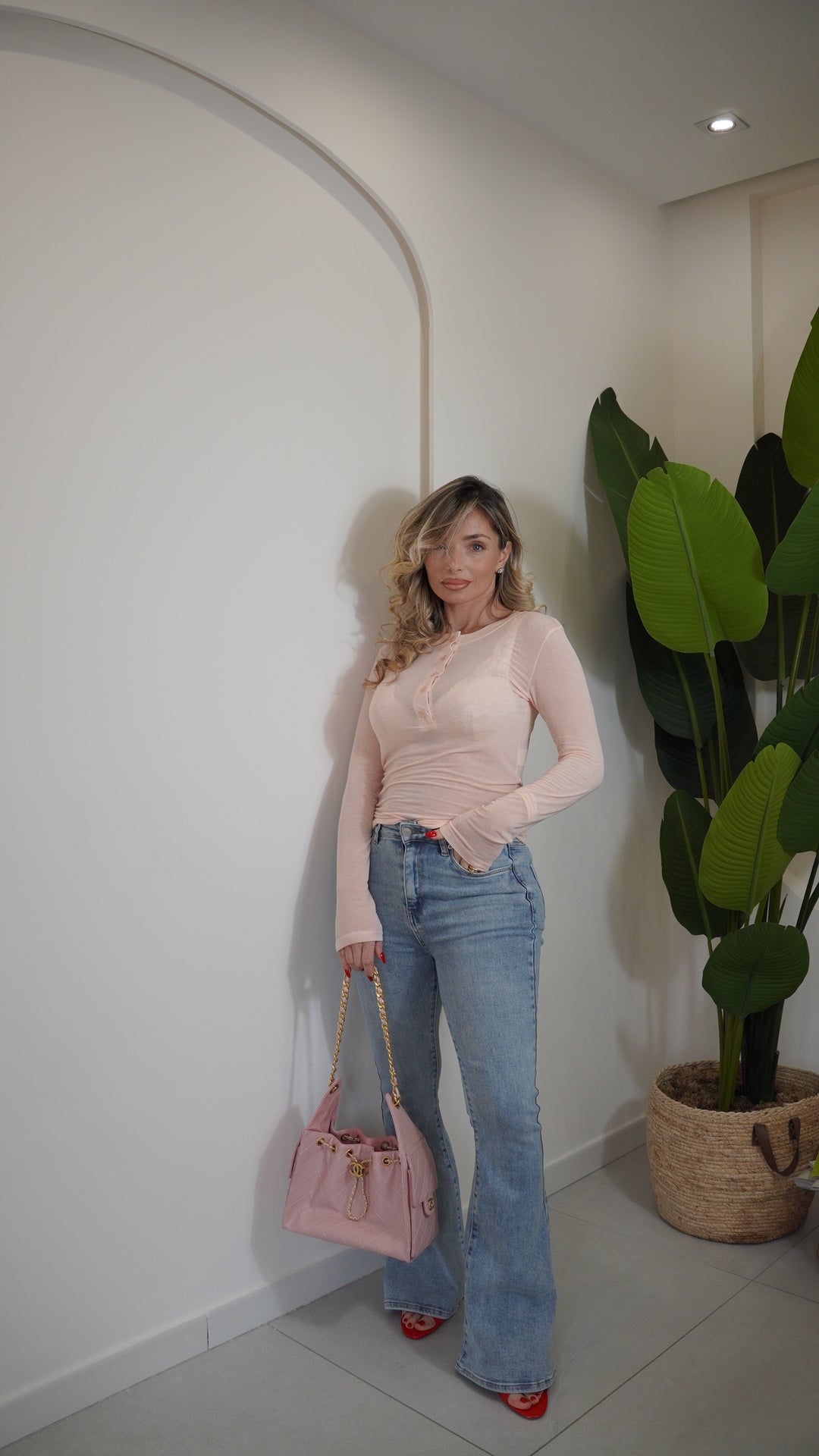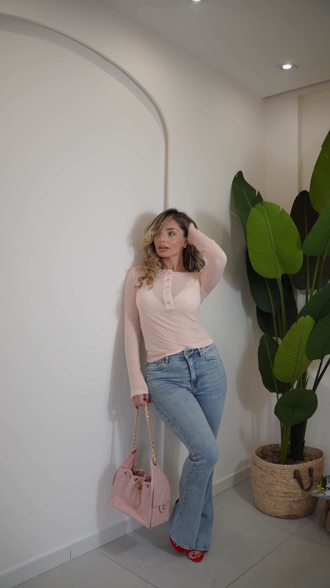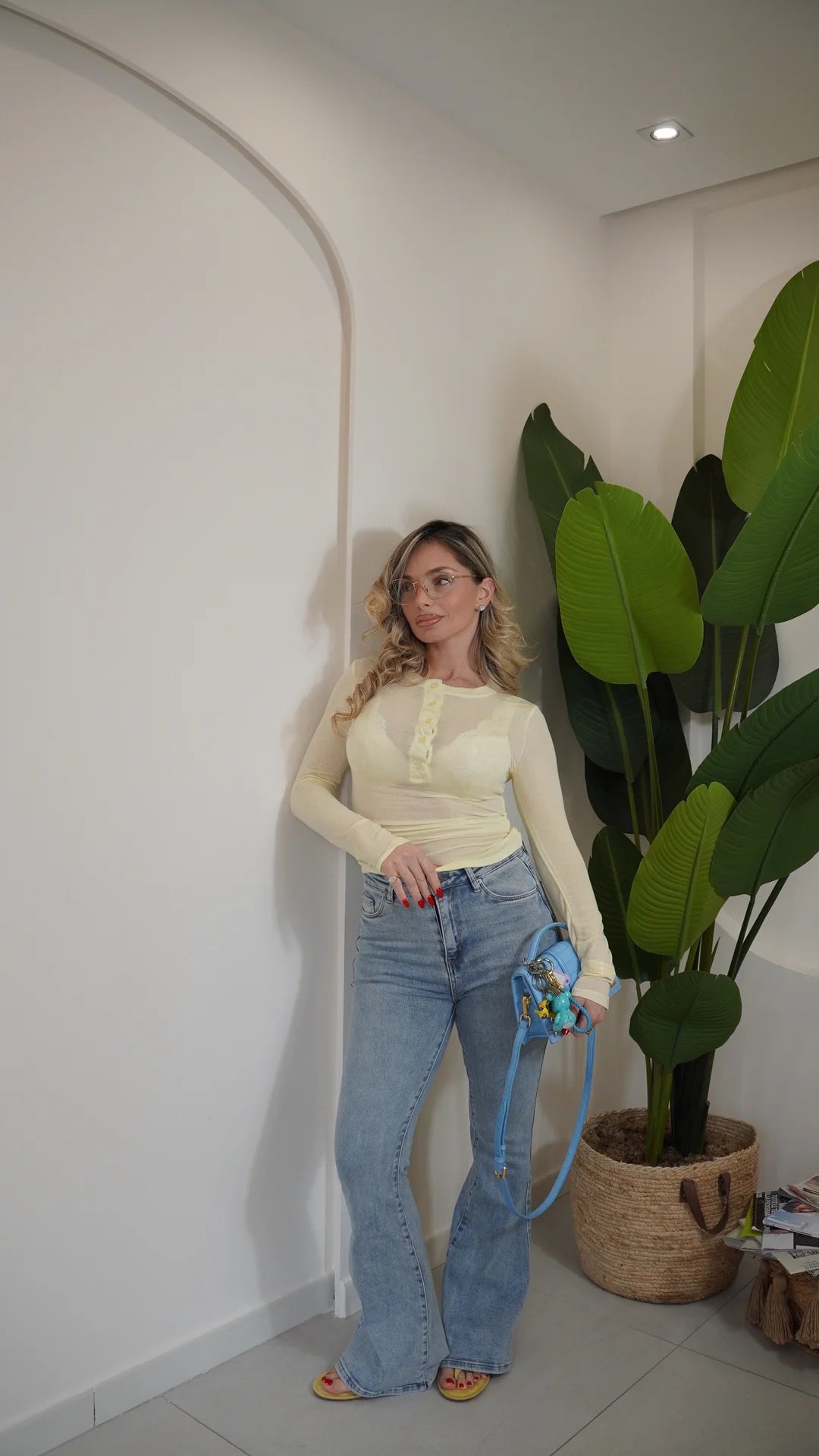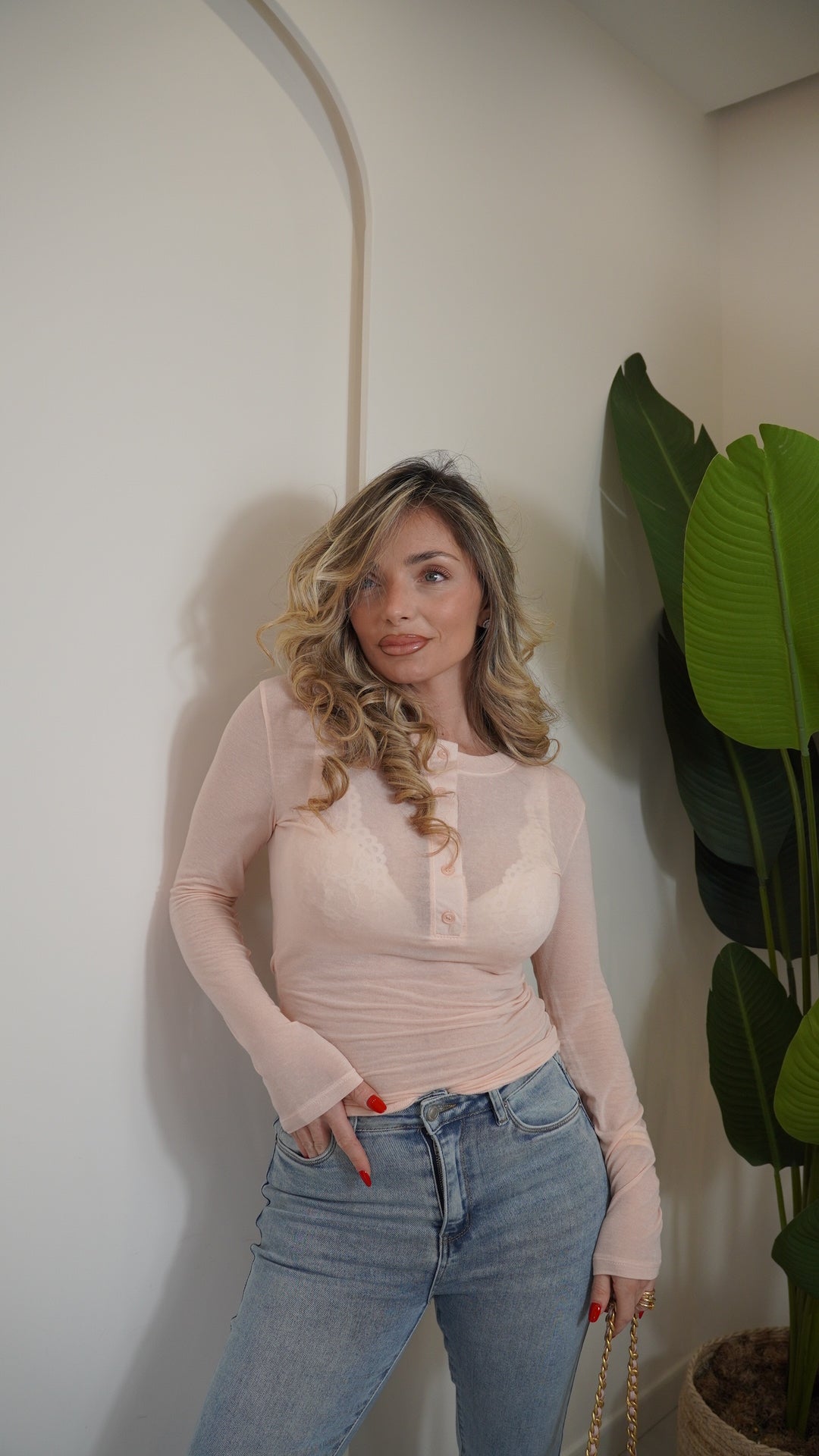 Maglia semivelata in cotone taglia unica aderente ed elastica con collo rotondo E bottoncini frontali apribili