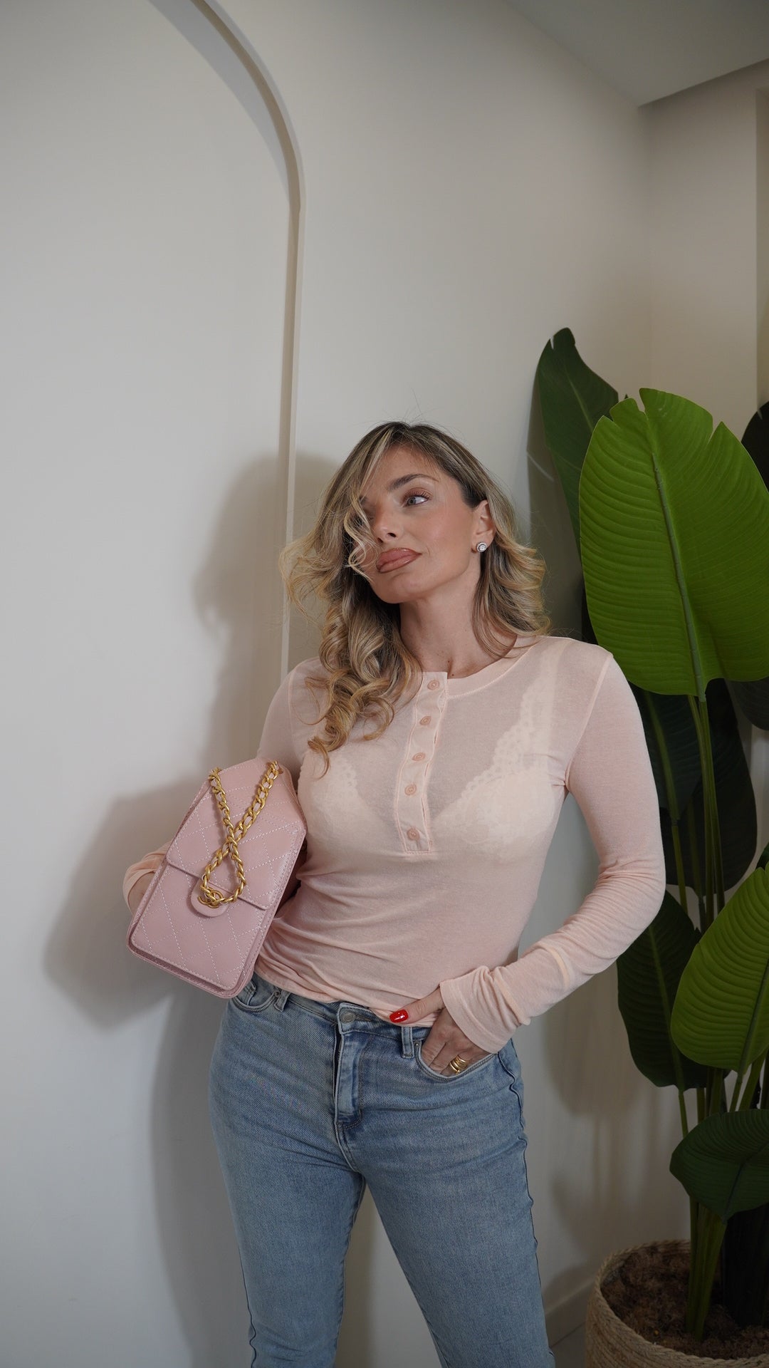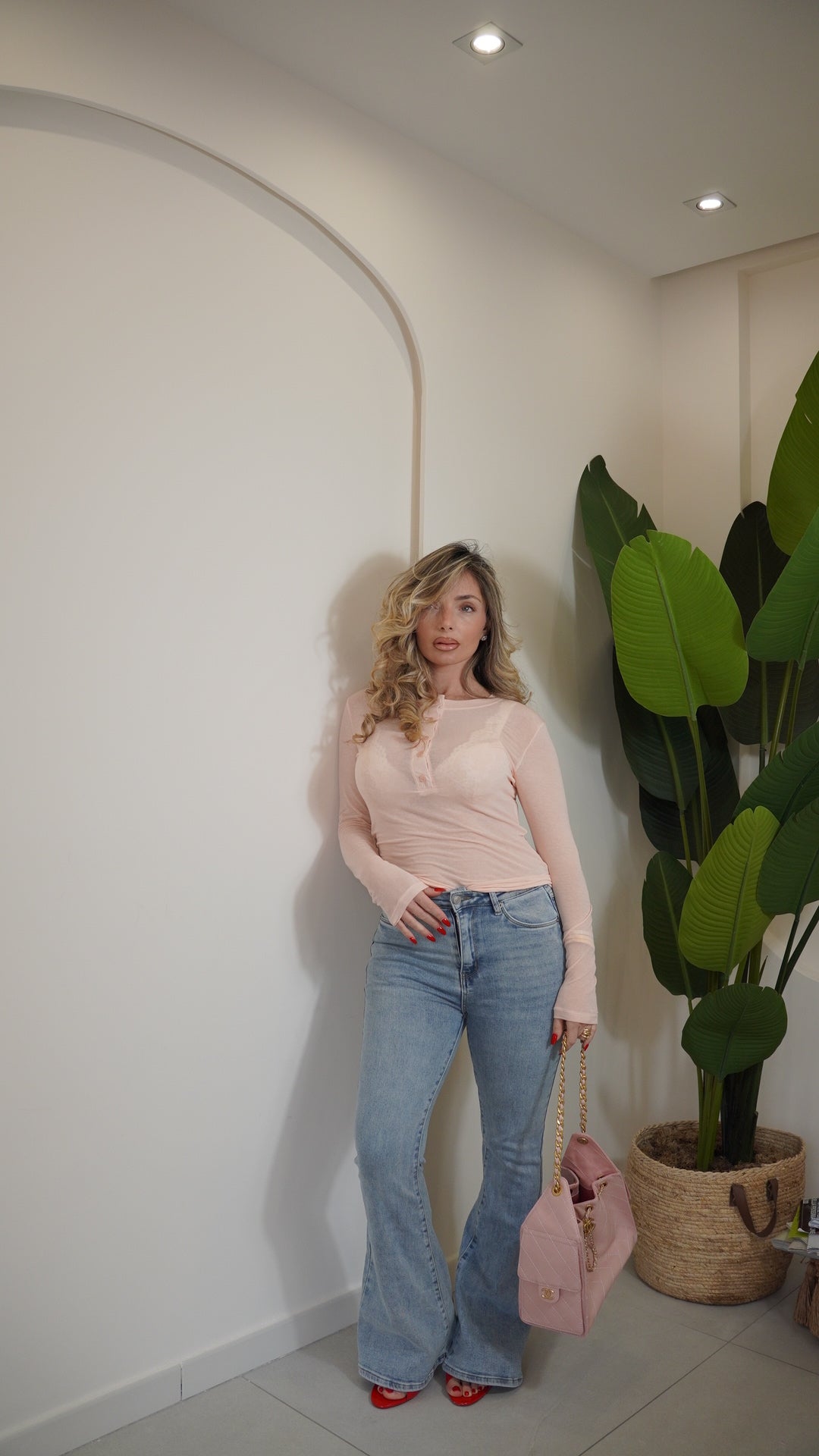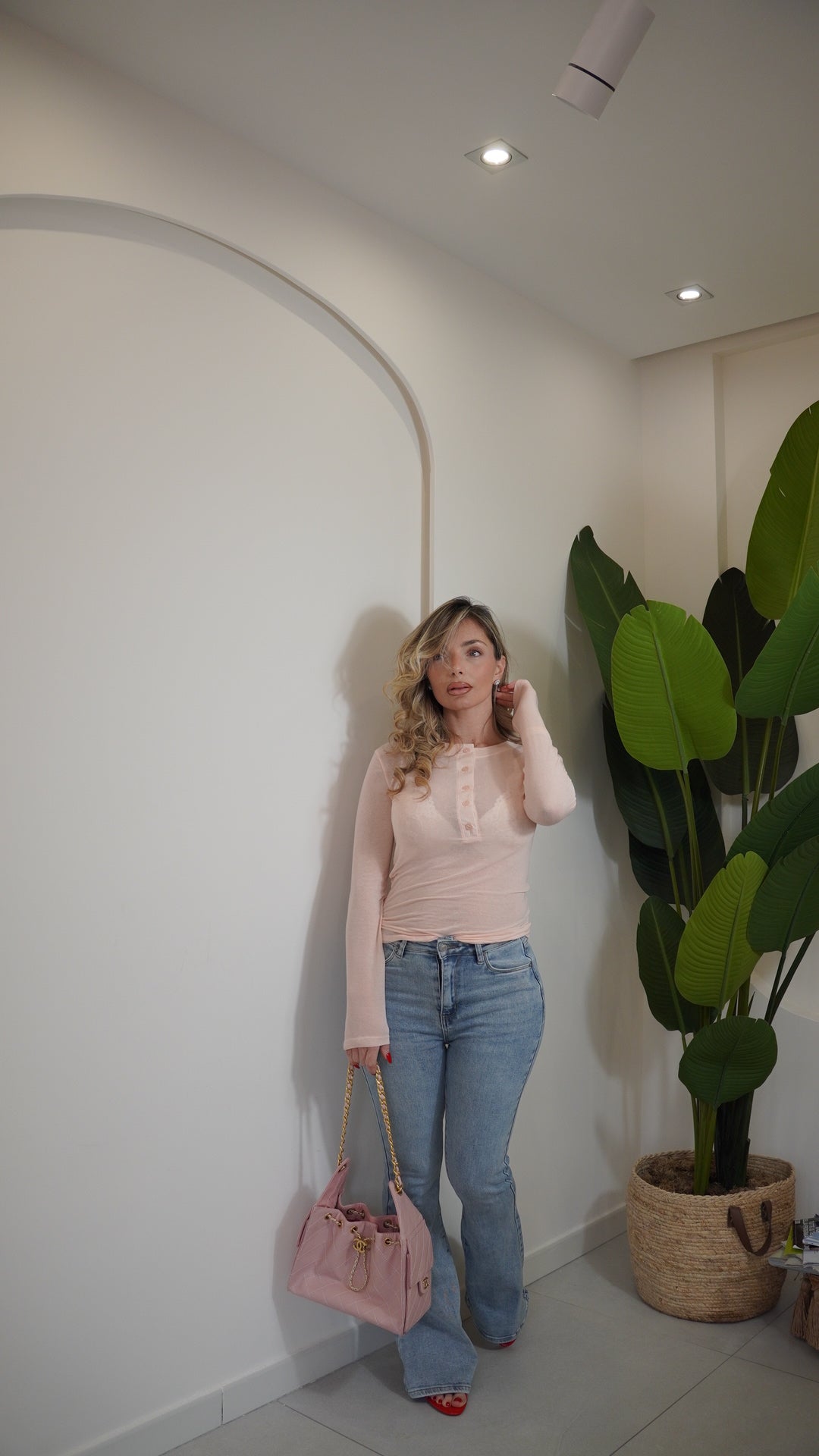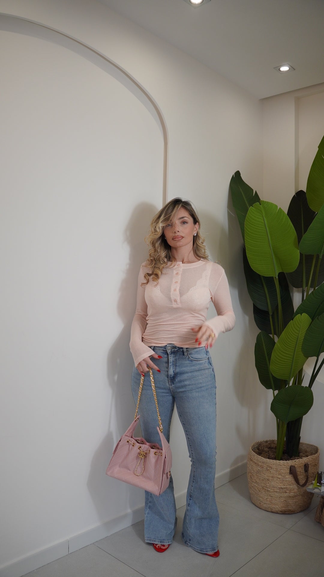 Maglia semivelata in cotone taglia unica aderente ed elastica con collo rotondo E bottoncini frontali apribili
