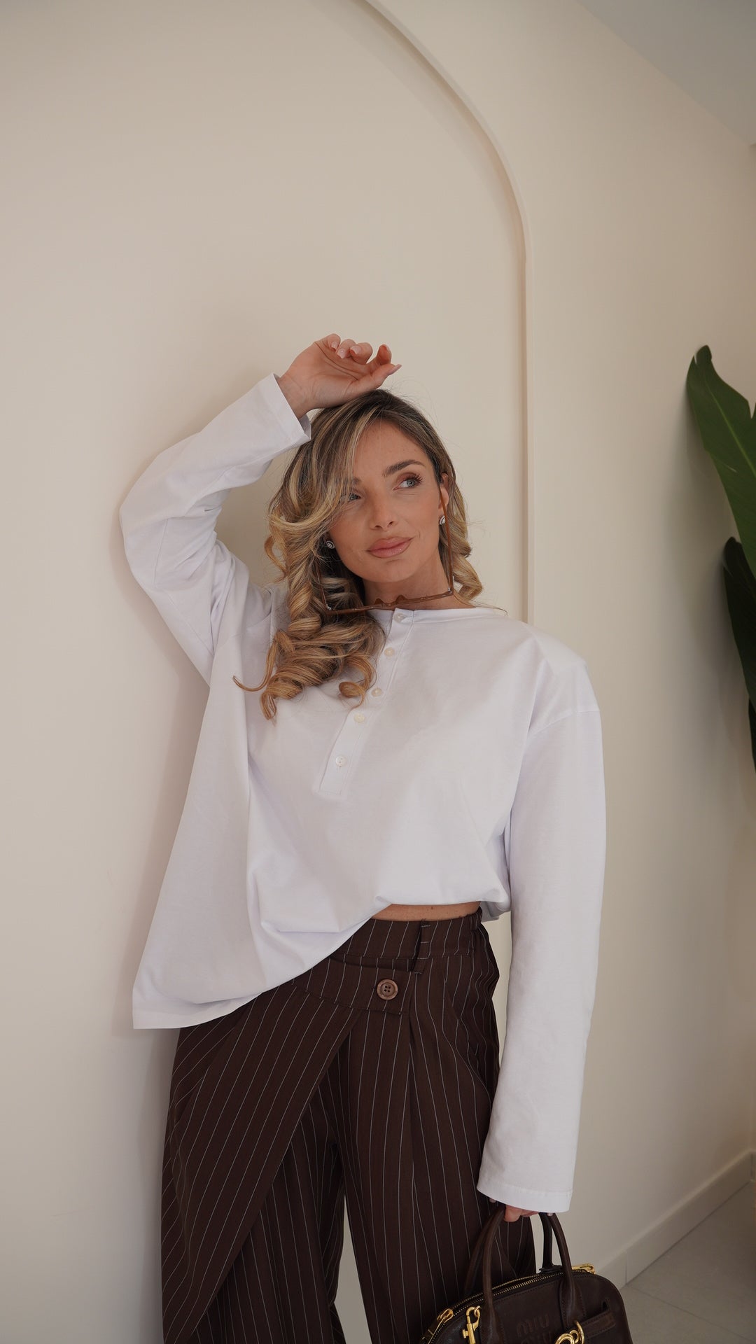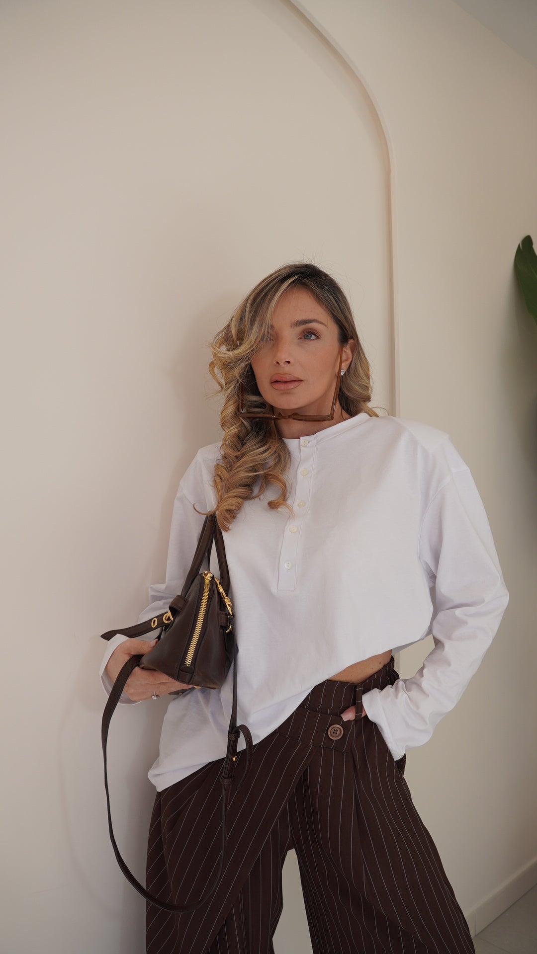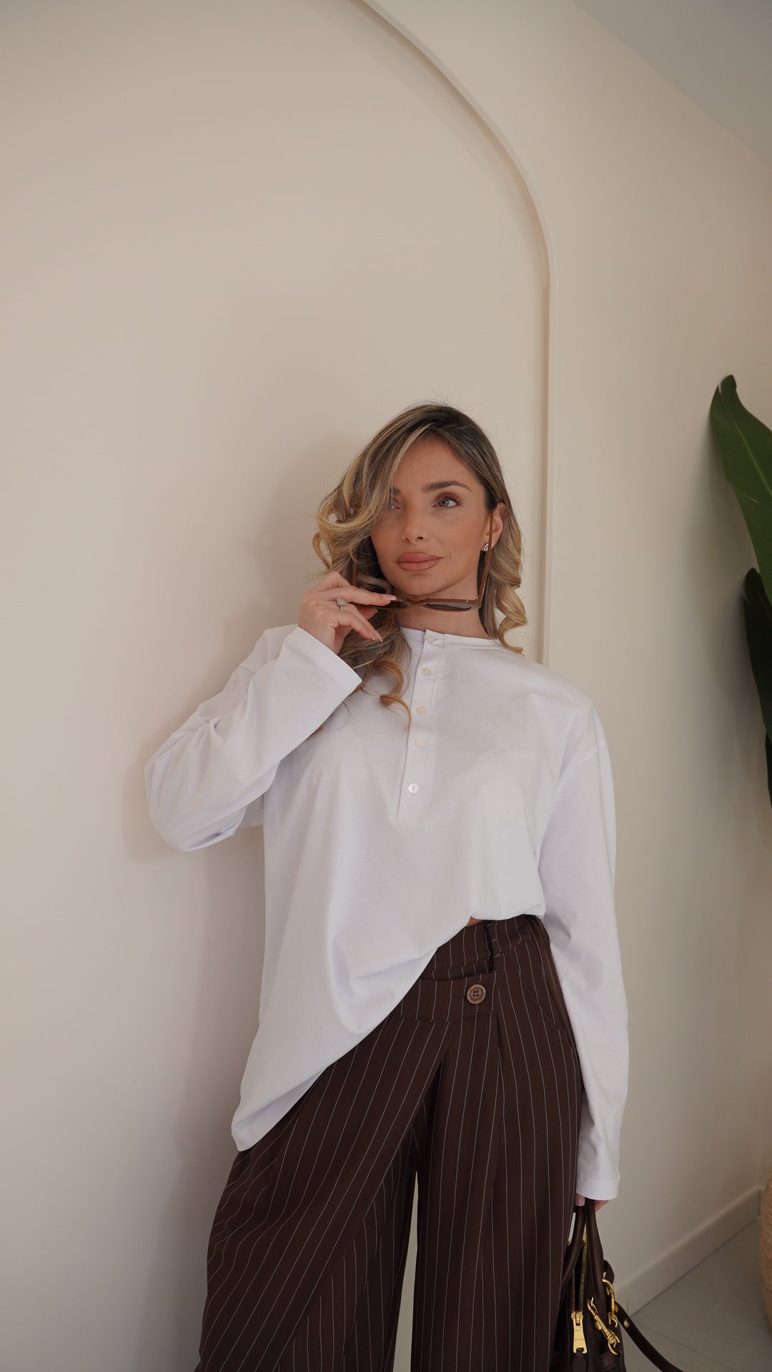 T-shirt in cotone premium quality taglia unica modello over con  bottoncini frontali e spalline incorporate la taglia unica può vestire da una s ad una L