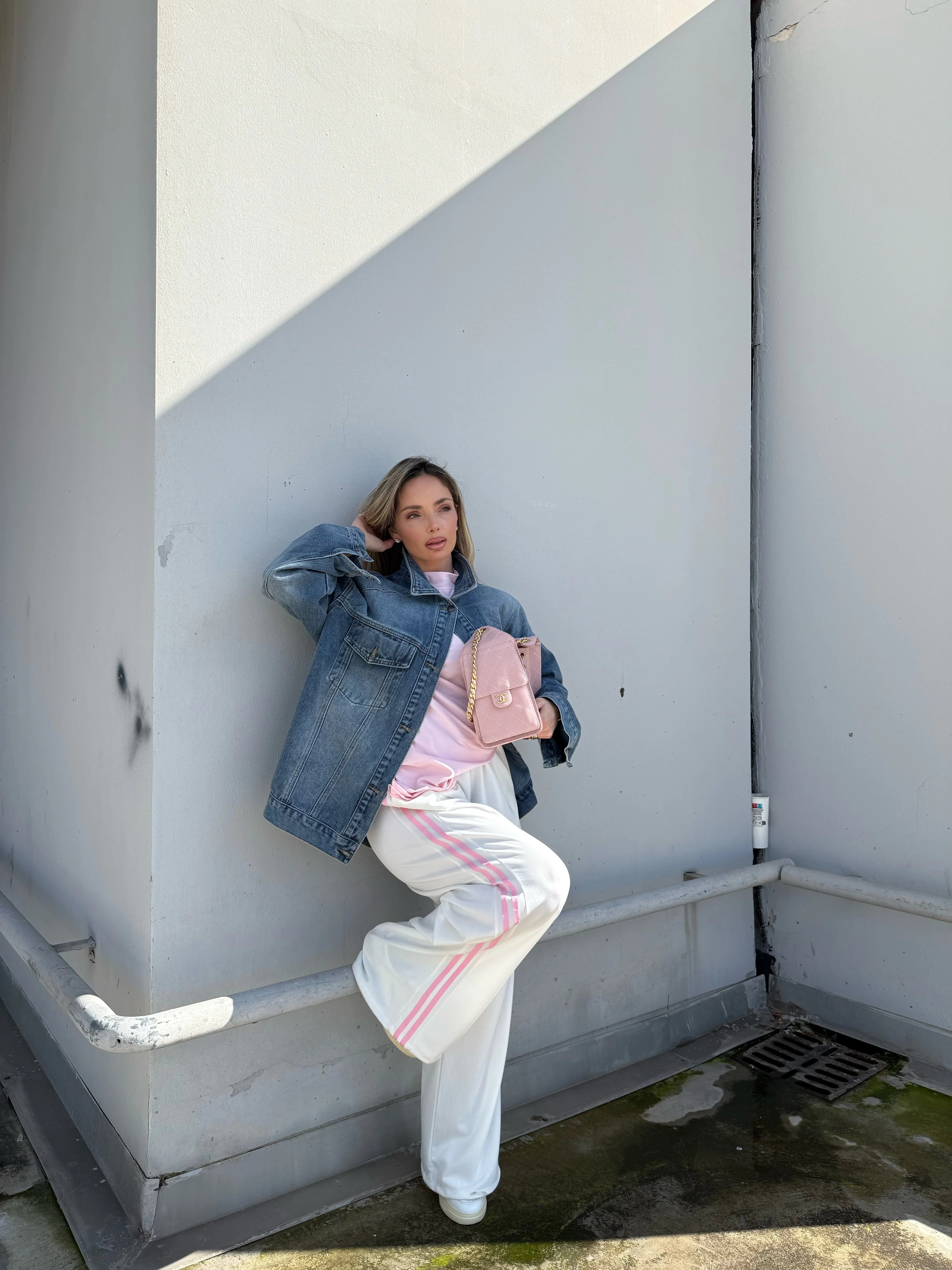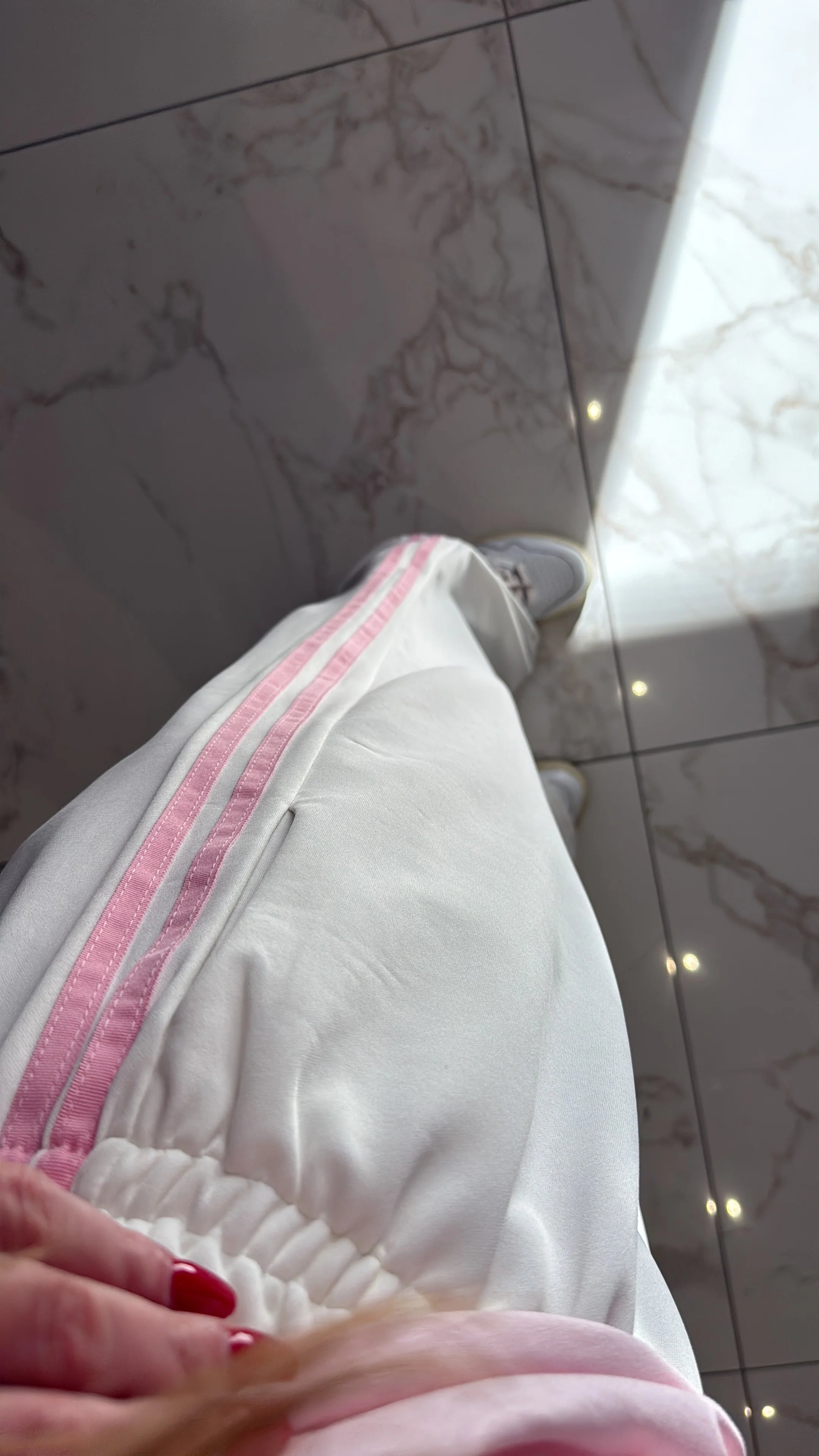 Pantalone morbido in tuta taglia unica con elastico in vita e gamba ampia con dettaglio bande laterali a contrasto di colore